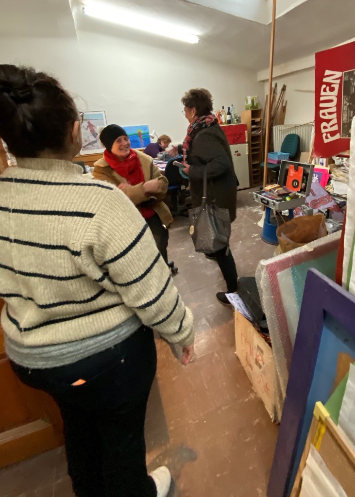 Juj, volt még rengeteg dolog (például savanyított minipatiszon, de ez most mellékes), pl. hogy milyen fontos a kézművesség, főleg a “férfias” szakmák elérhetősége egy női közösségnek, hogy milyen módon gyűjtenek a tagoktól és a helyszíneik használatáért viszonylag pici pénzeket, vagy hogy ha jön valahonnan pénz, akkor abból a tapasztalatok szerint az lesz, hogy a döntéshozatalba hamarosan beszivárog a finanszírozó akarata is. Hogy fontos az együtt levés és együtt evés, és az is, hogy a borzasztó kedves, és rohadt tehetséges Sedef Hatapkapulu festőnő kiállításának december 7-én lesz a megnyitója.